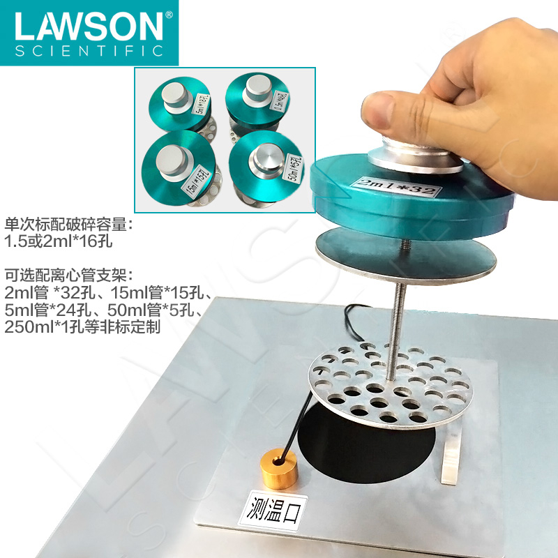 LAWSON08-II非接觸式超聲波粉碎機(jī),也叫杯式破碎,用于無菌破碎,隔著離心管能打斷染色體、破碎細(xì)胞。適于ChP、ChP-seq、RNA-seq以及染色質(zhì)剪切