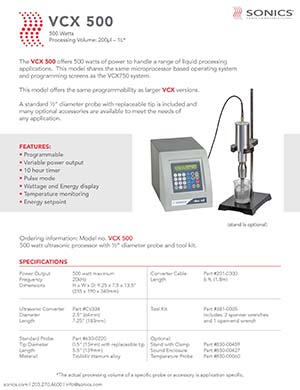 SONICS超聲波細(xì)胞破碎儀 VCX500,可安全處理各種有機(jī)和無(wú)機(jī)材料,從250微升到1升*。典型應(yīng)用包括納米技術(shù)(納米顆粒材料和石墨烯分散體的生產(chǎn))、細(xì)胞裂解、樣品制備、均質(zhì)、ChIP分析、乳化、解聚和解聚,以及在超聲化學(xué)液體處理領(lǐng)域的應(yīng)用。